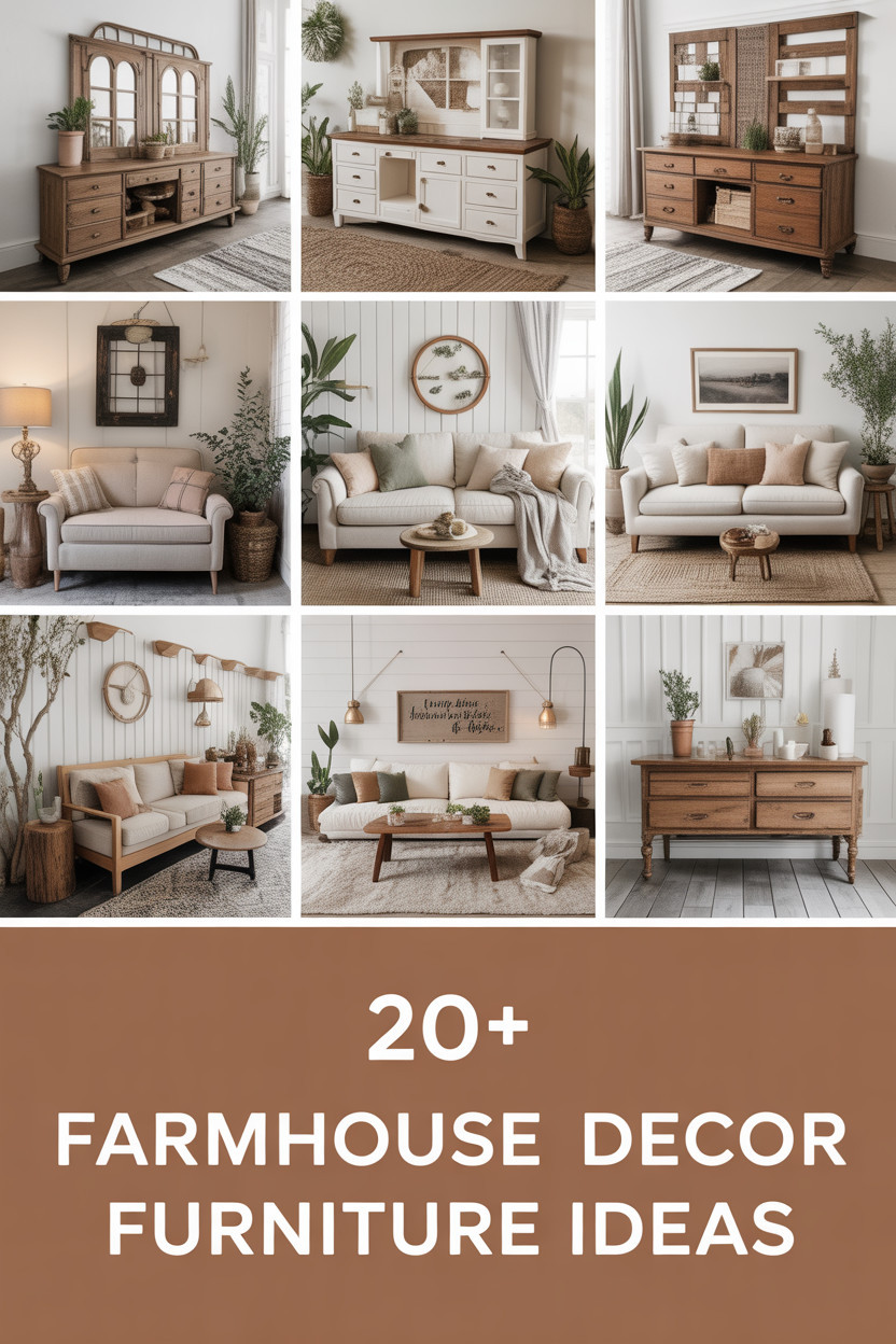 Farmhouse decor furniture ideas offer a charming blend of rustic elegance and cozy comfort that can elevate your home’s aesthetic—get inspired by these creative suggestions!