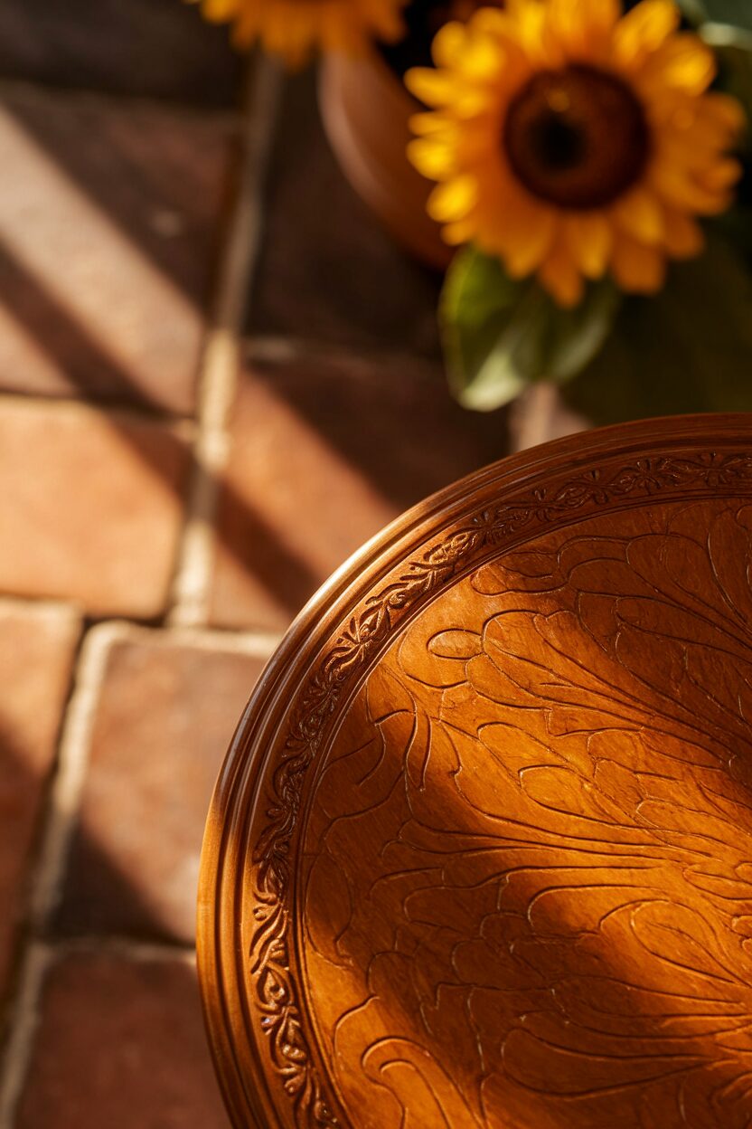 Consider a table with leaf or flower carvings for a natural vibe. They are great conversation starters at dinner parties.
