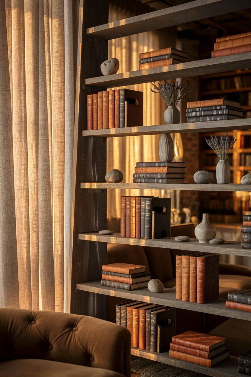 Reclaimed wood shelving is a fantastic way to add a touch of history to your home. Each shelf has its own character, thanks to the wood’s previous life.