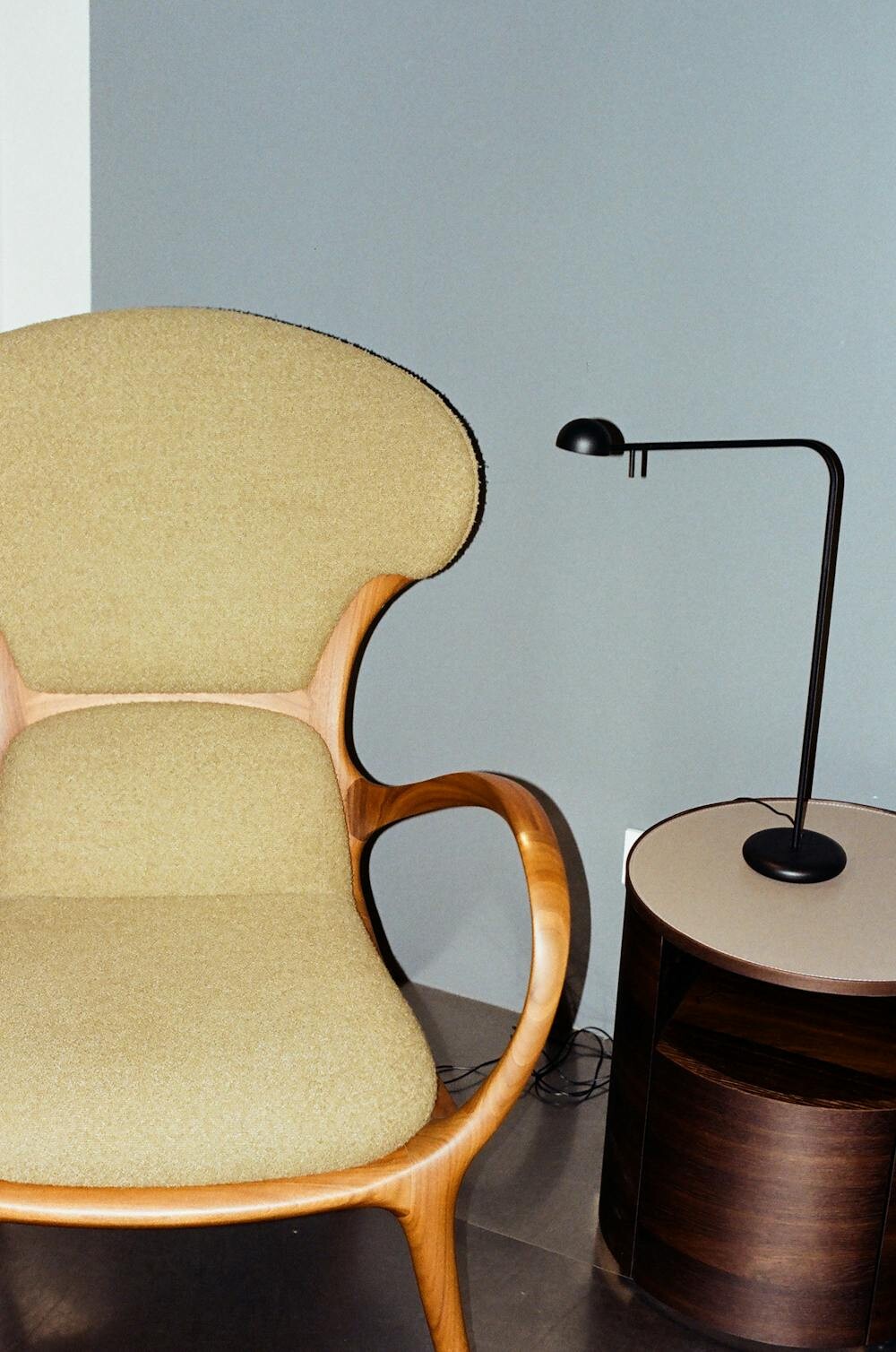 The Slipper Chair is a low-slung, armless chair perfect for small spaces. It’s designed to offer comfort and style without taking up too much room.