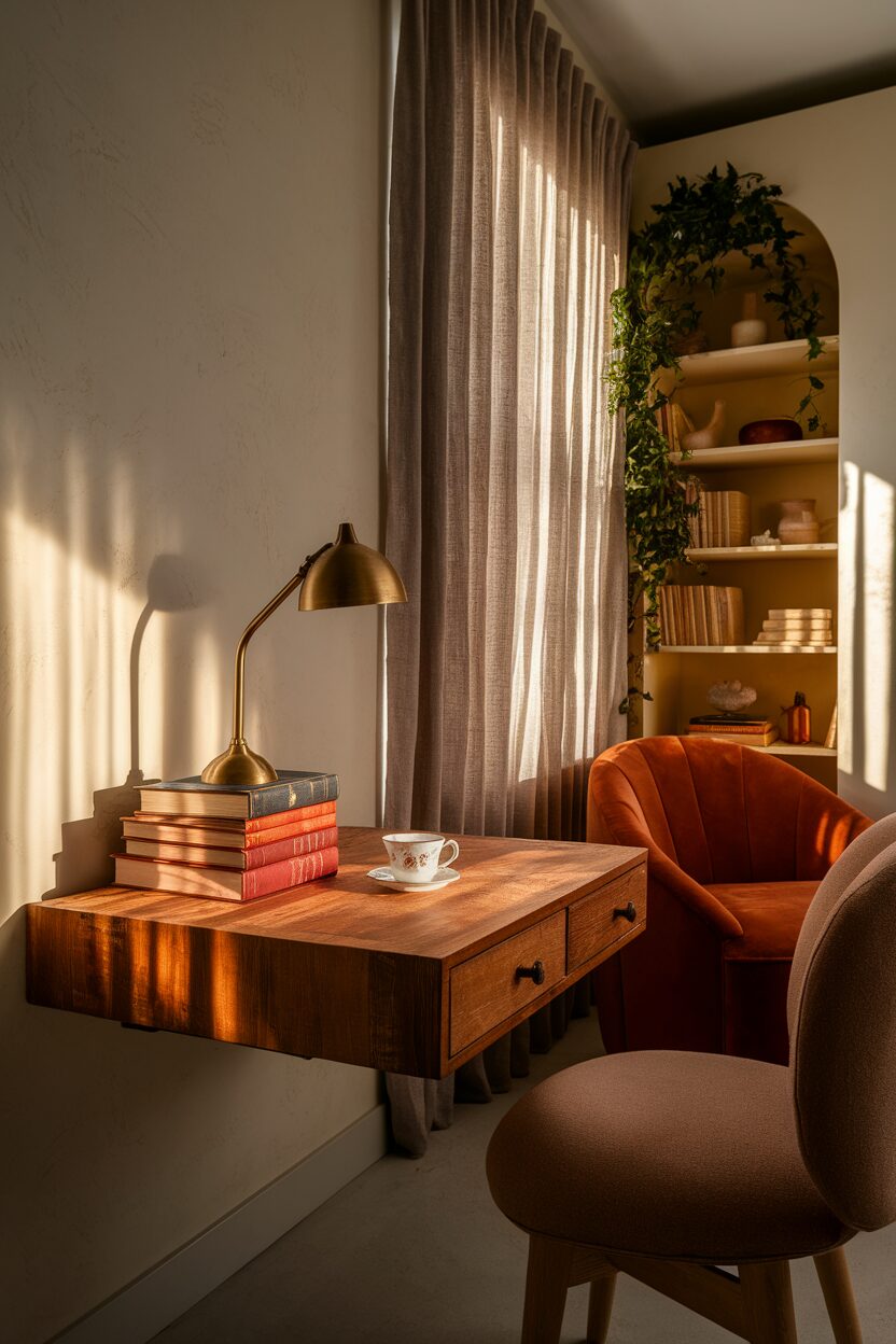 Wall-mounted desks are perfect for creating a workspace without sacrificing floor space. They fold away neatly when not in use.
