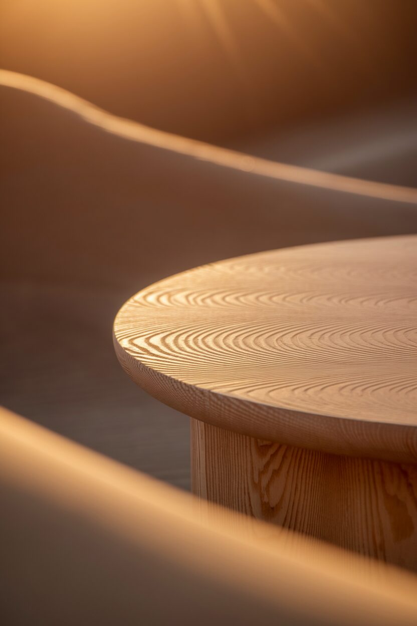 Consider a table with a unique shape or texture for added interest. Sand colors work wonderfully in homes with lots of natural light.