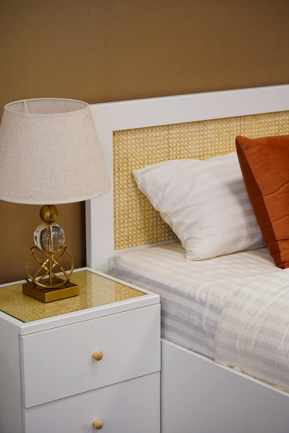 They offer storage and style, keeping your bedside essentials within reach. The gentle hue pairs well with white or cream bedding.