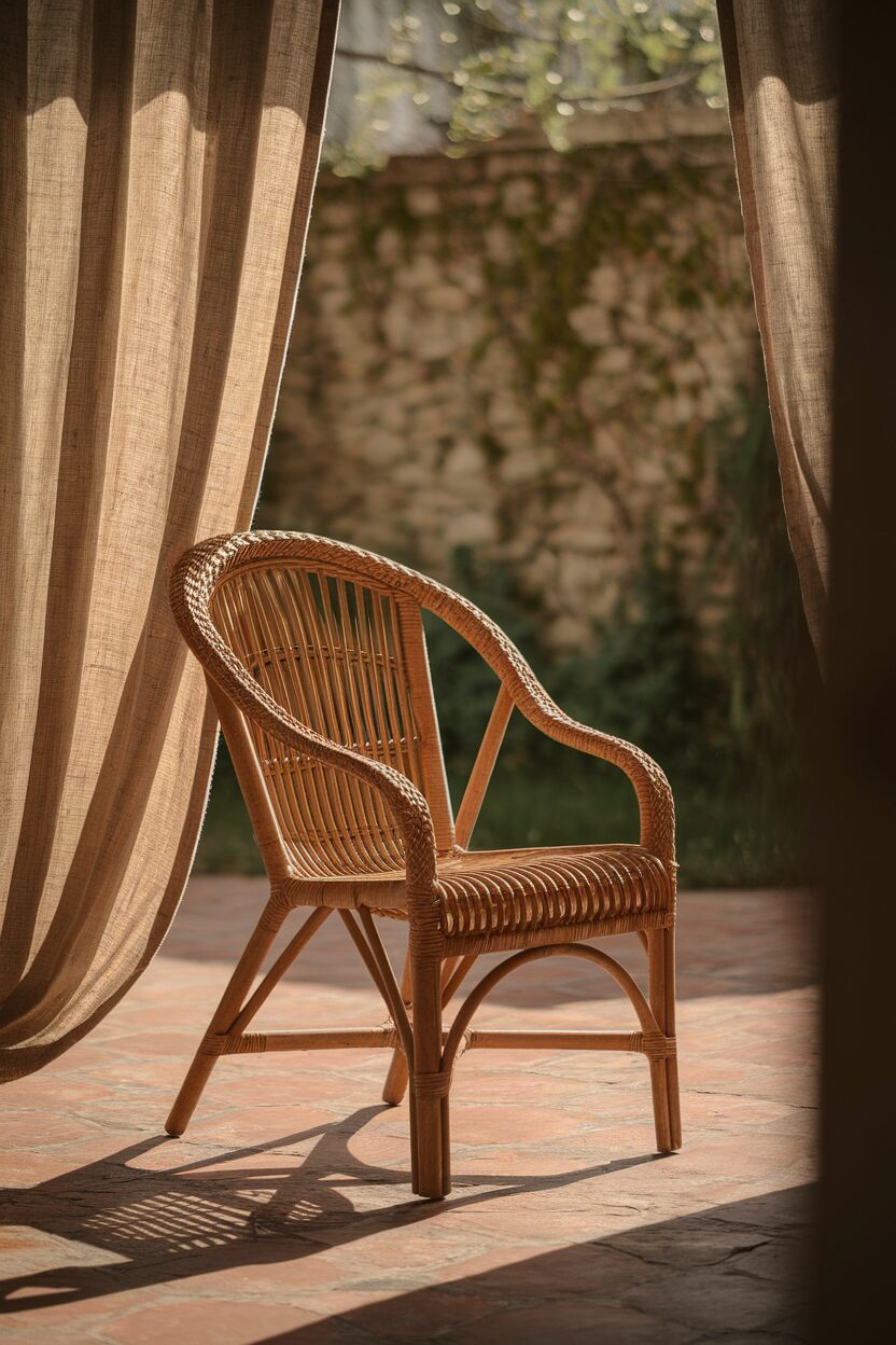Rattan is a trendy choice, seen in many chic homes today. These chairs are versatile, fitting both indoor and outdoor settings.