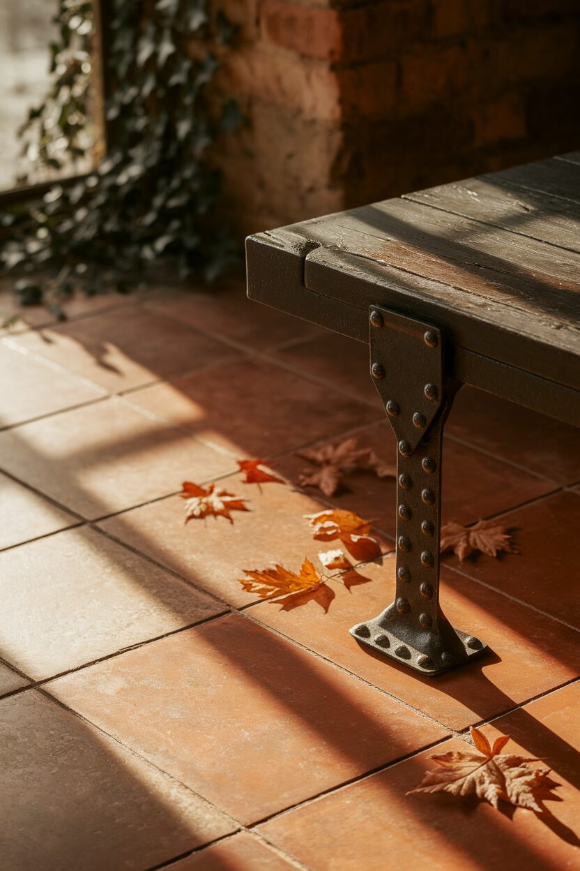A bench with iron legs is a classic addition to your hallway or dining area. It’s perfect for extra seating or as a decorative piece.