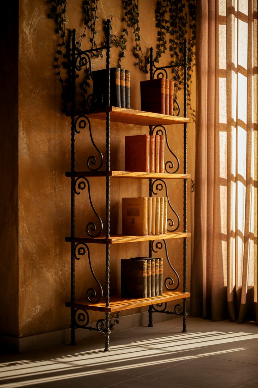 A bookshelf with iron legs adds a touch of rustic elegance to any room. It’s a perfect blend of function and style, offering ample storage.
