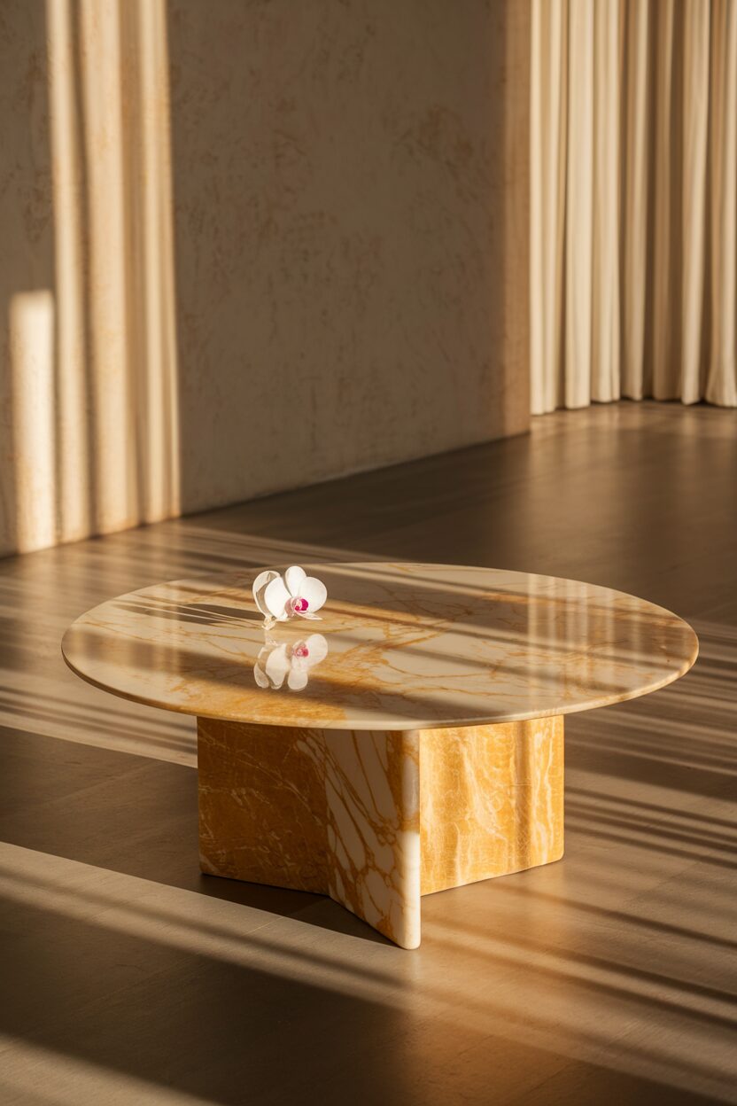 Marble brings a sense of opulence to any living room. Its natural patterns make each piece unique.