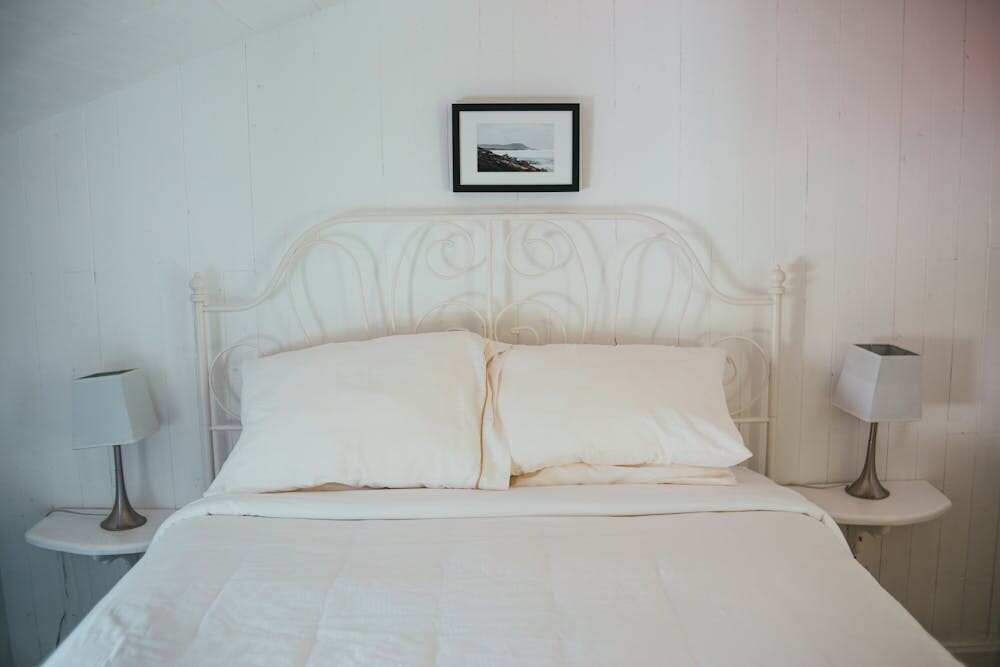 Opt for neutral tones to keep the look serene. Layer with plush bedding for ultimate comfort.