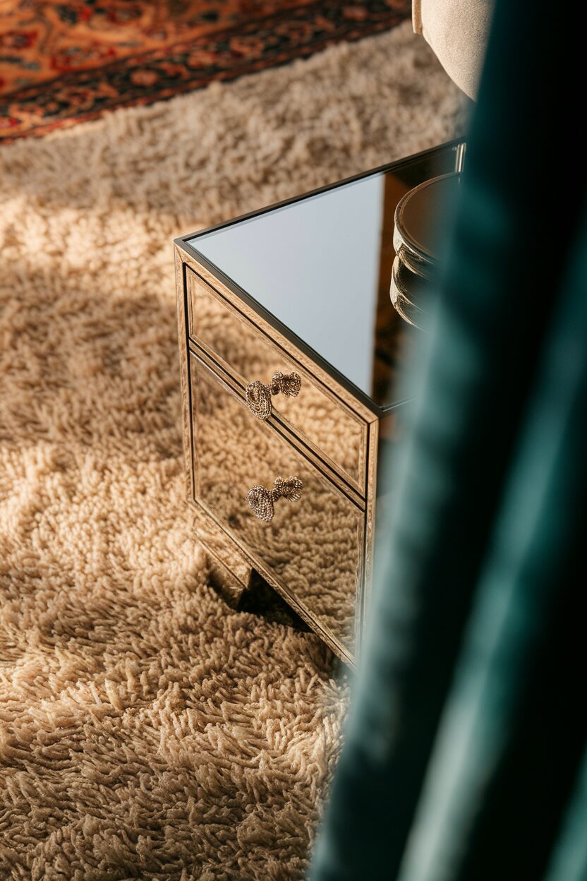 Mirrored nightstands are a magical addition to your bedroom. They reflect light, making your space feel bigger and brighter.