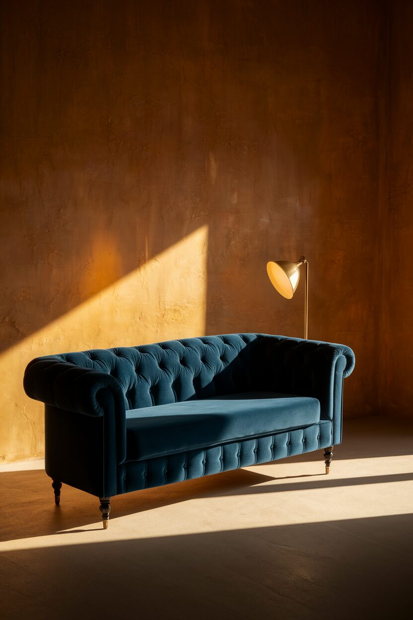 Keep your velvet sofa looking fresh by gently vacuuming or using a lint roller. It’s an easy way to maintain its beauty.