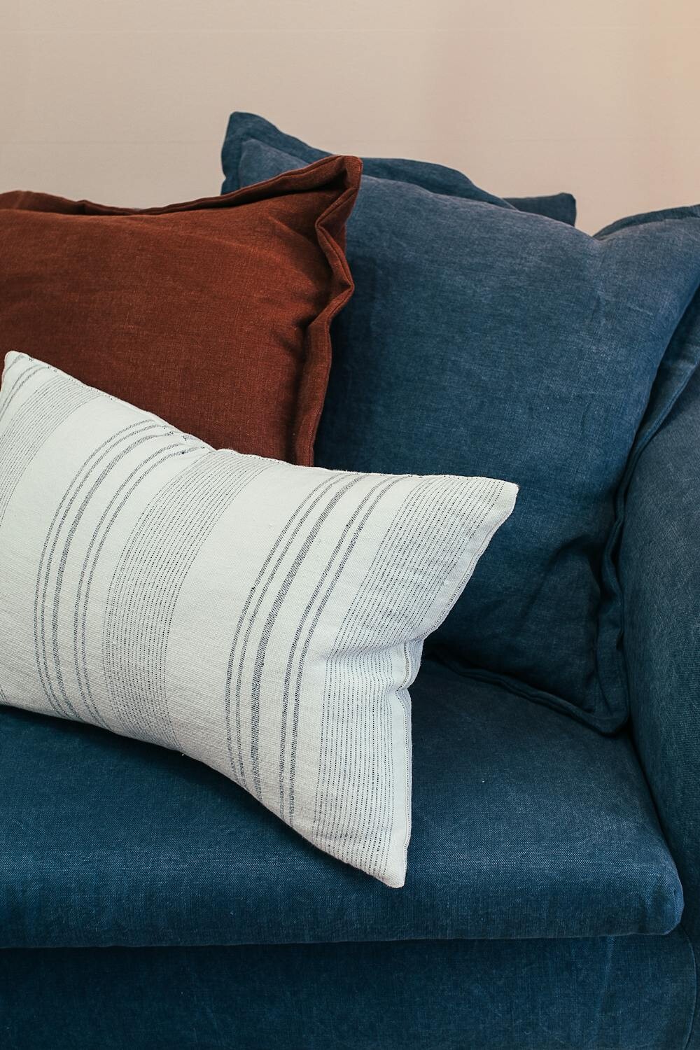 Personalizing with throw pillows can add a pop of color and coziness. Despite its luxurious look, it can be surprisingly affordable.