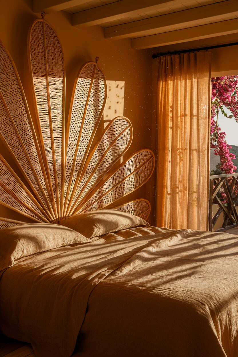A cane headboard can be the focal point of your bedroom. It adds a touch of nature and craftsmanship.