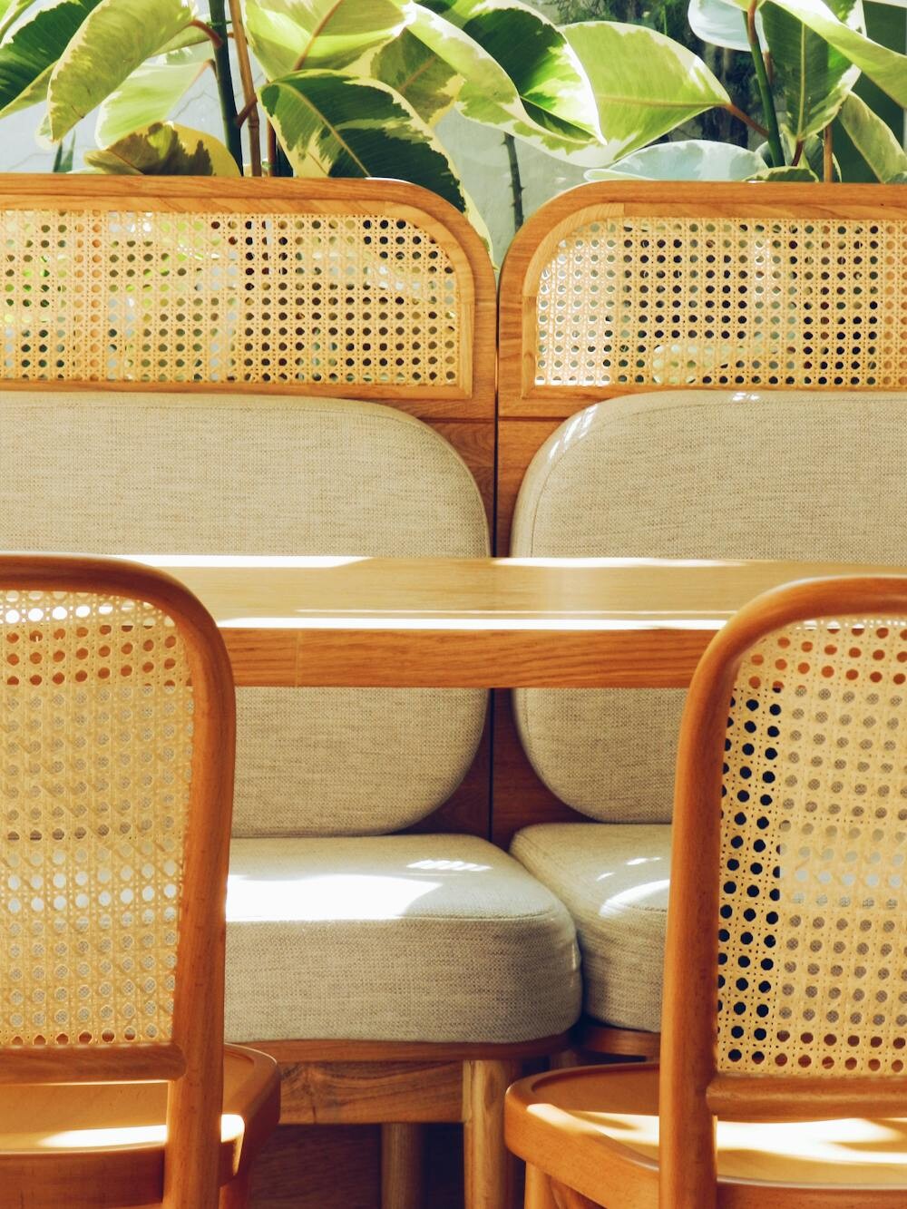 Cane armchairs bring a warm, inviting feel to any room. They provide a perfect spot to relax with a good book.