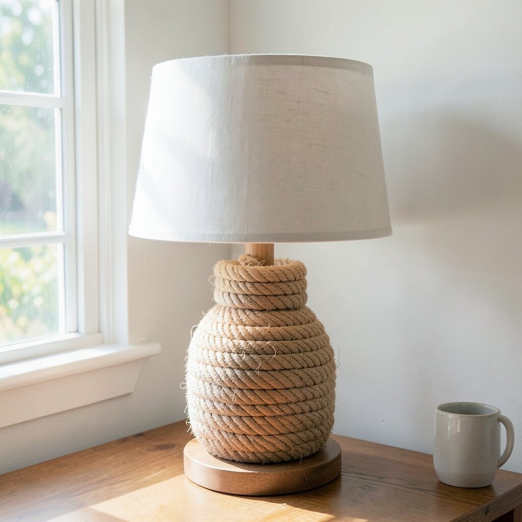 Nautical rope lamps are perfect for beach lovers. They bring a coastal vibe that feels like a day at the beach.