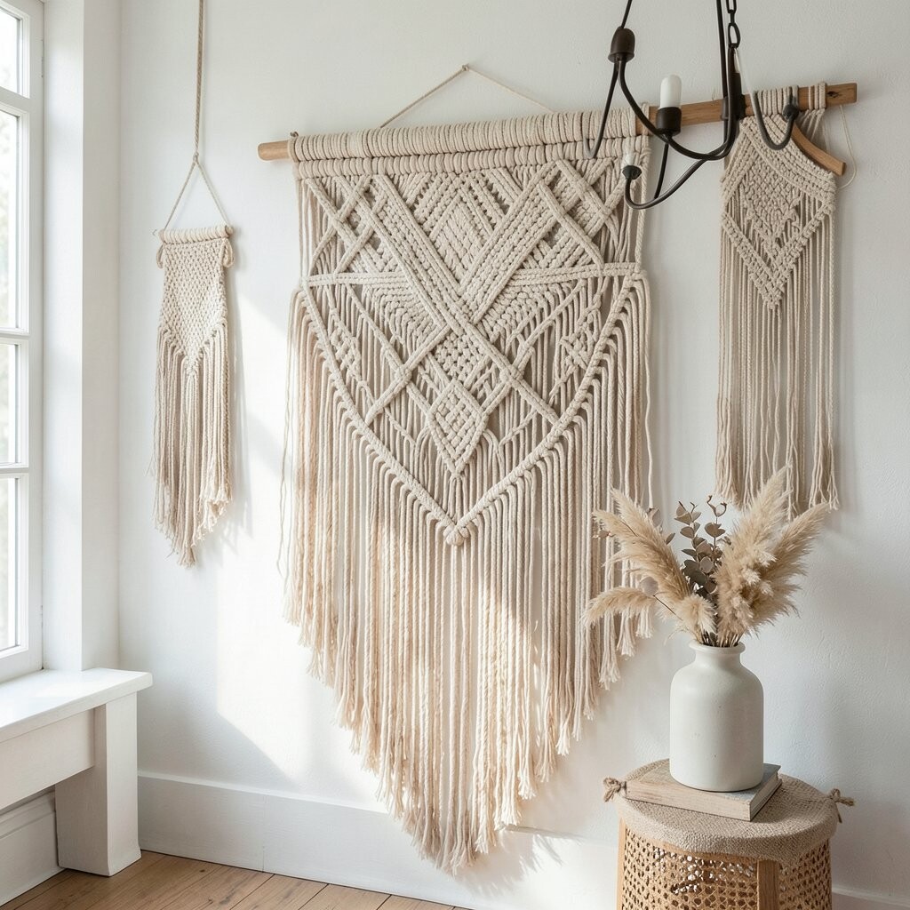 Macramé takes you on a delightful journey with its intricate knots and vintage vibes. This art form adds texture and a cozy touch to any room.