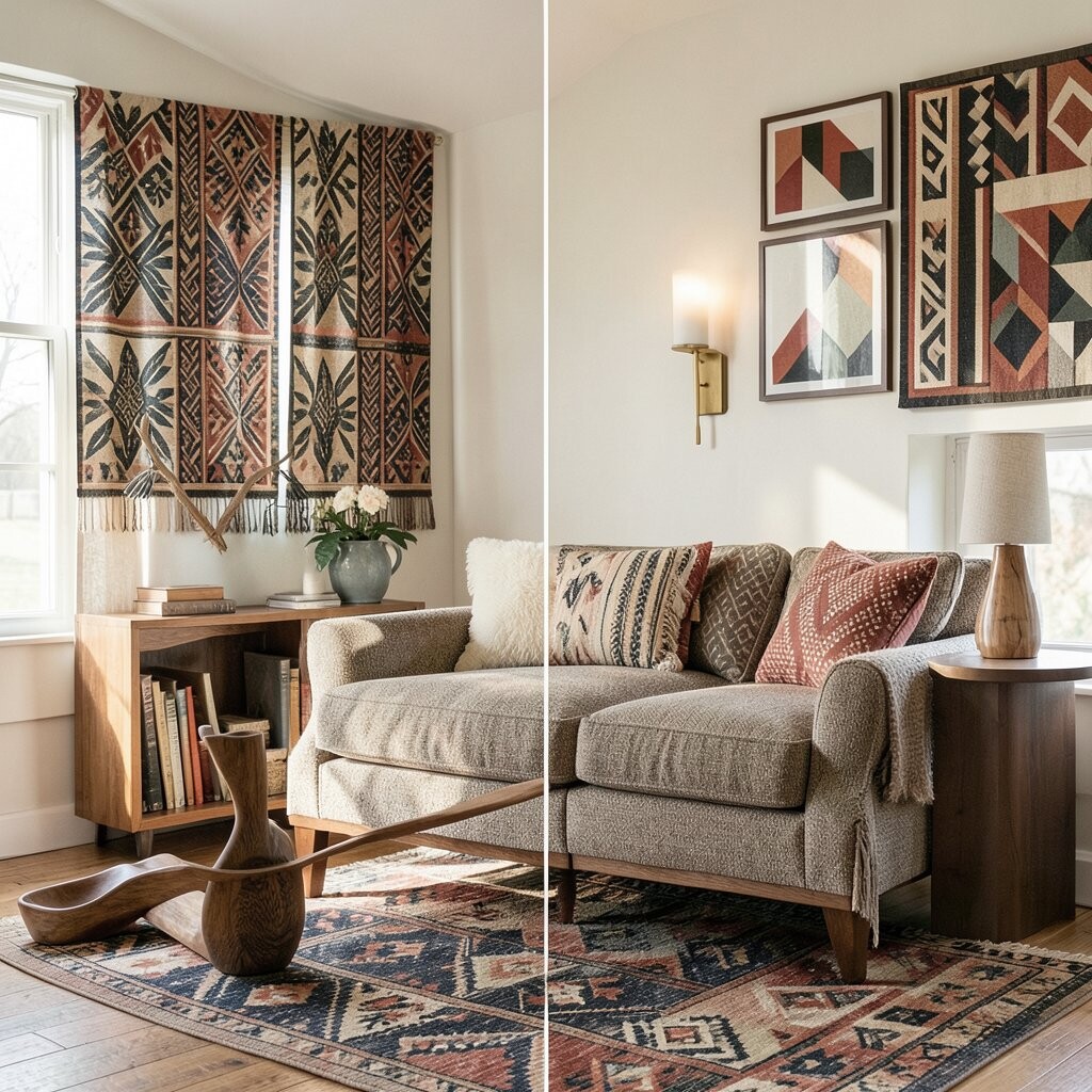 Try hanging a macramé wall piece in your living room for a boho-chic look. The best part? You can even make it yourself, keeping costs low.