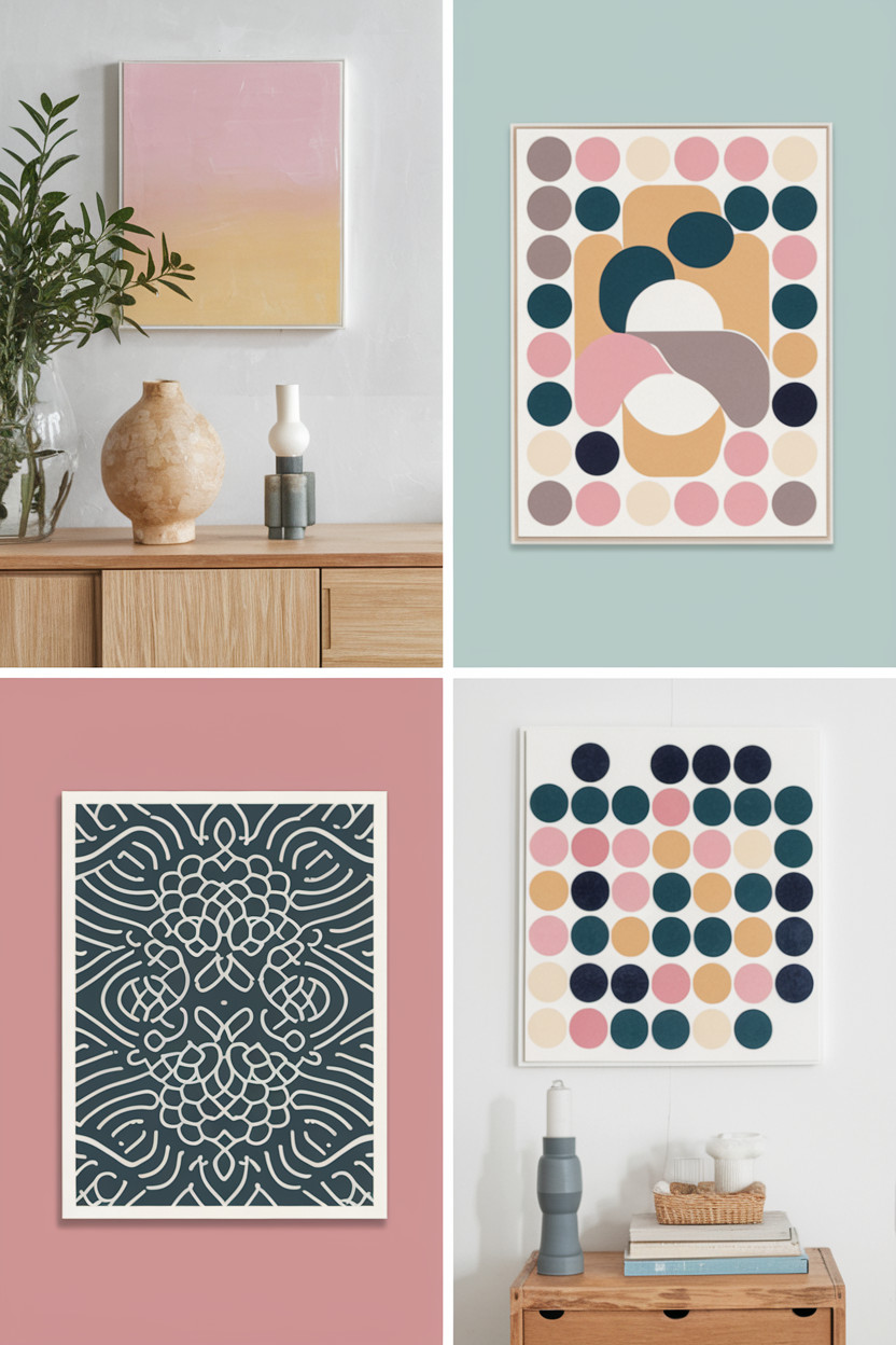 Consider creating a gallery wall with mismatched frames or a single oversized piece that speaks to you. Mix different styles for a fun, eclectic look!