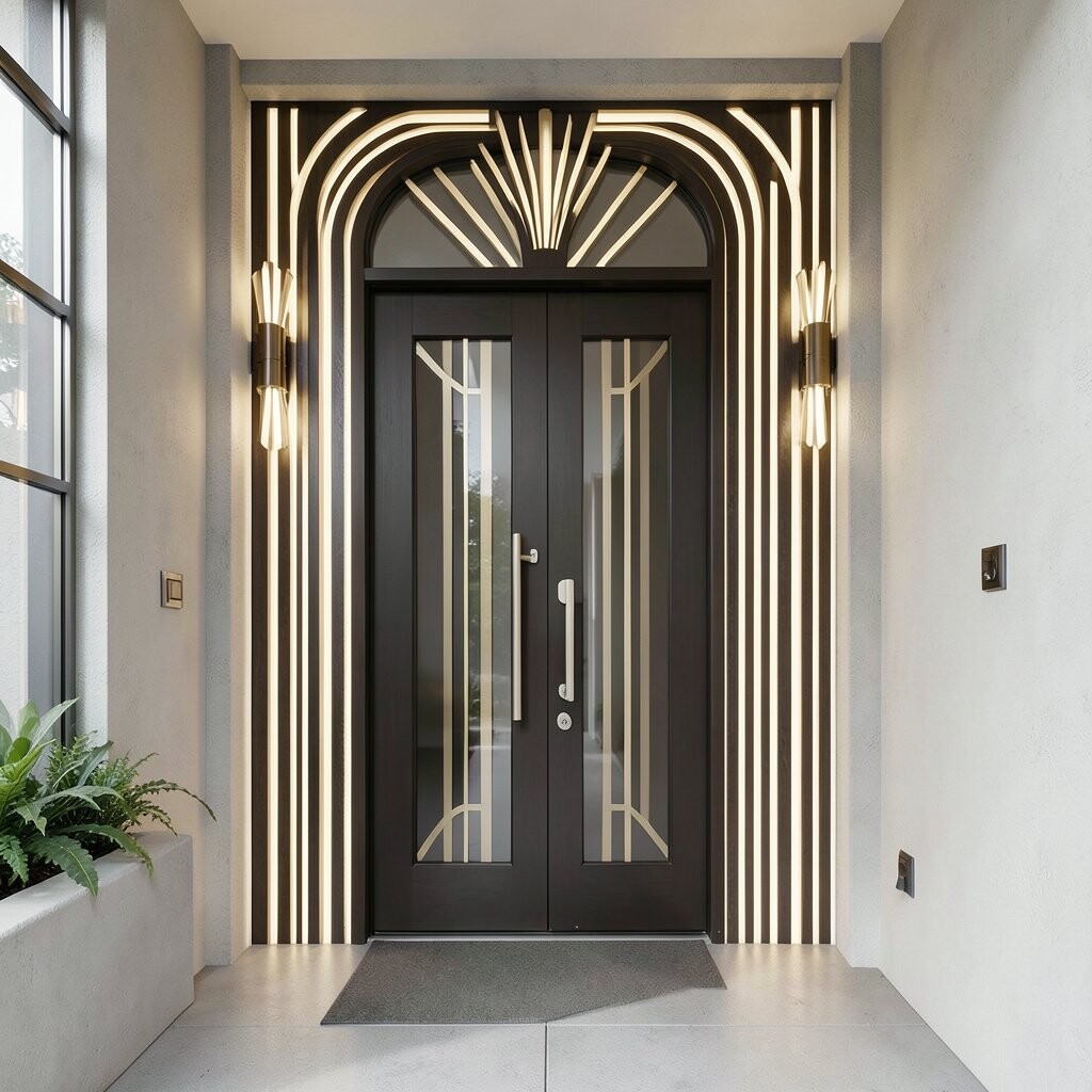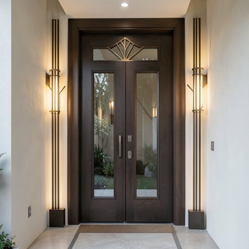Imagine a sleek, modern silhouette welcoming you home. A minimalist Art Deco wall light provides a clean and sophisticated look.
