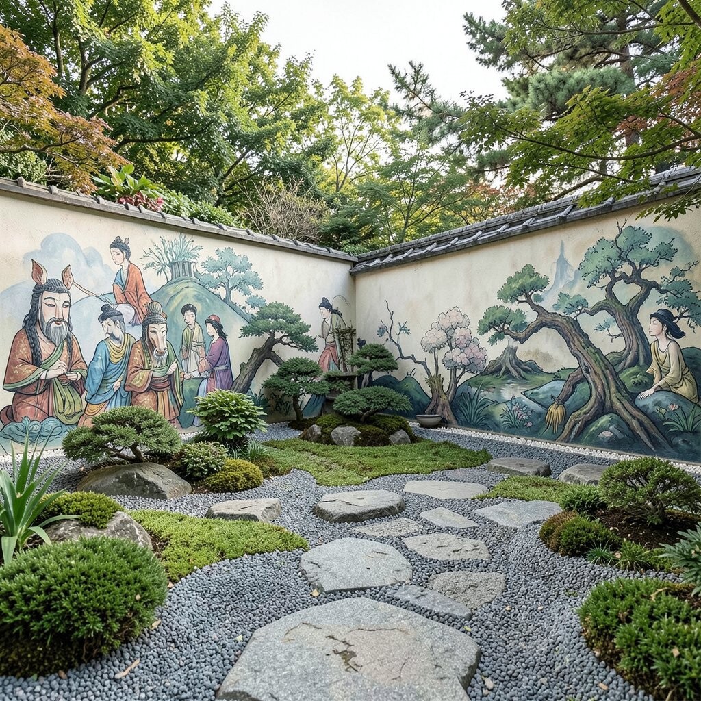 Create a calming retreat with a zen garden mural. It’s perfect for adding peace and tranquility to any space.