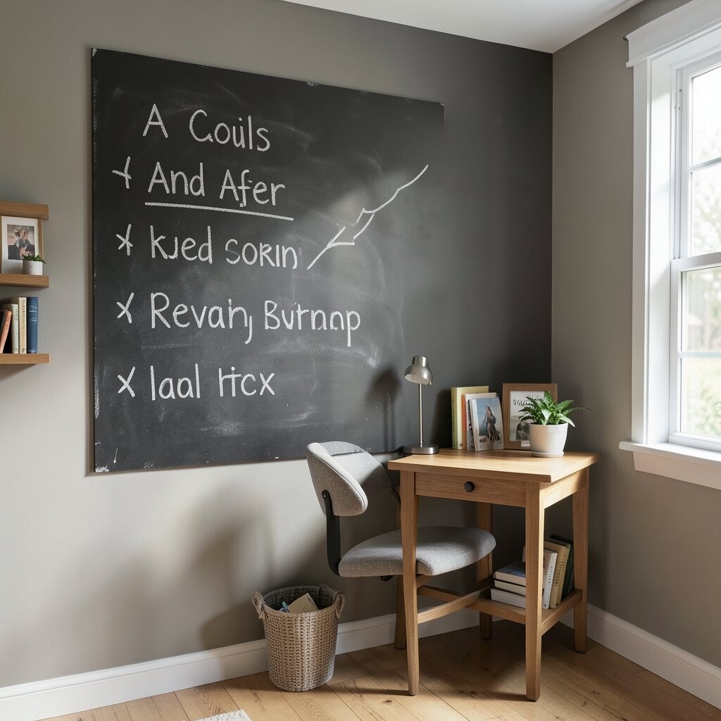 Create a dedicated study corner with a chalkboard wall. It’s a great place for notes, formulas, or inspirational quotes to aid learning.