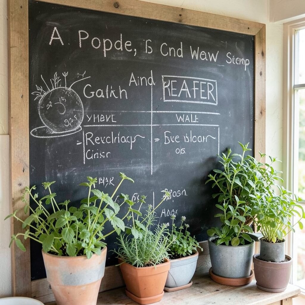 Label your indoor herb garden with a chalkboard wall. This makes it easy to identify plants and adds a rustic charm to your space.