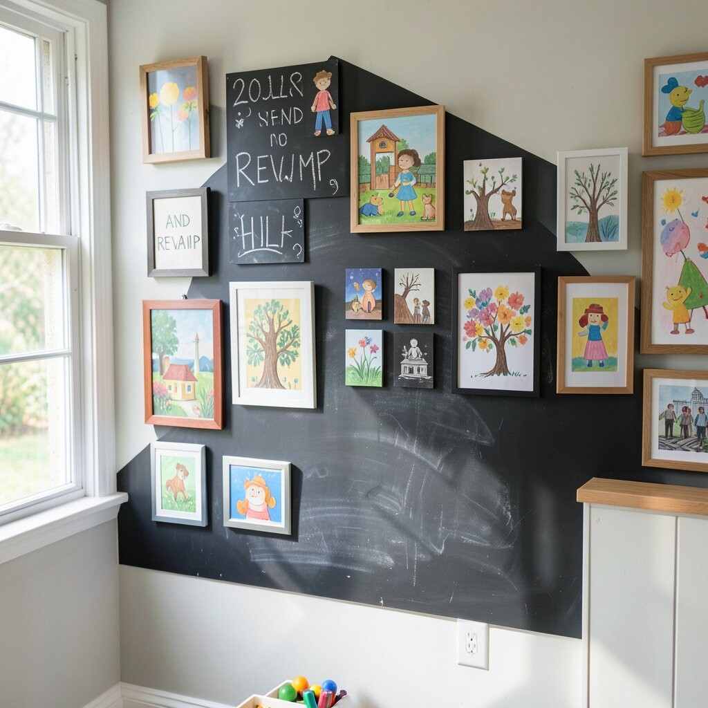 Turn a wall into a dynamic art gallery for your kids. A chalkboard wall offers them a limitless canvas to express their creativity.