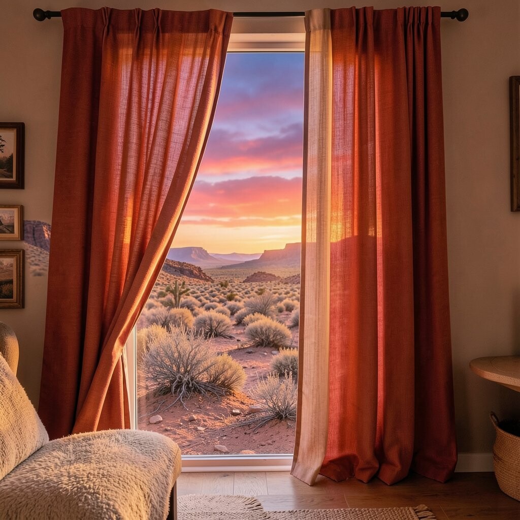 Imagine the soft glow of sunset filtering through your windows. Sunset-toned curtains can make this dream a reality.