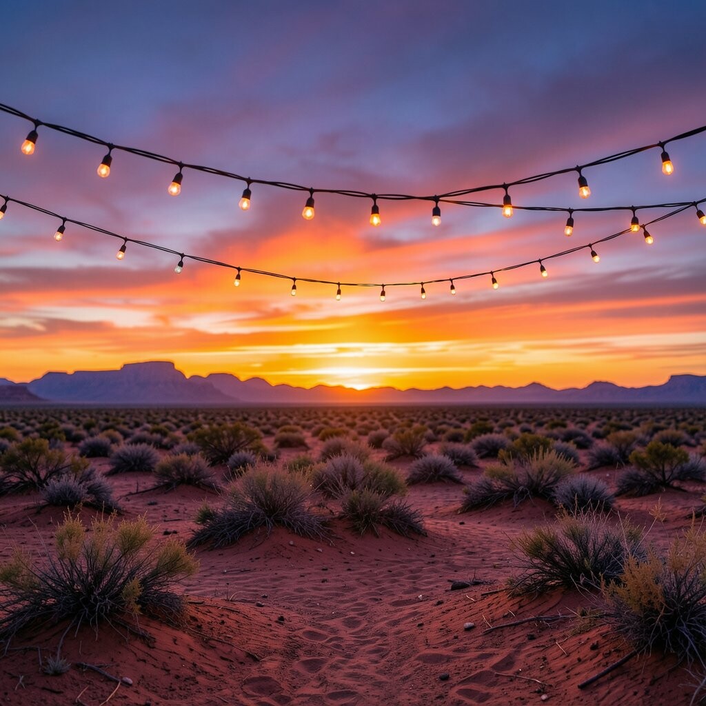 Wrap your space in the glow of a desert sunset with string lights in warm hues. They can create a magical atmosphere indoors or out.