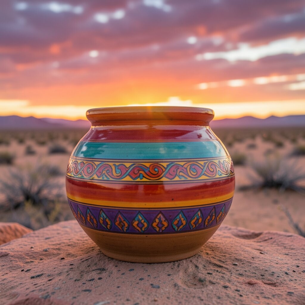 Add a touch of the desert to your home with pottery in sunset colors. Think of vases, bowls, or planters.