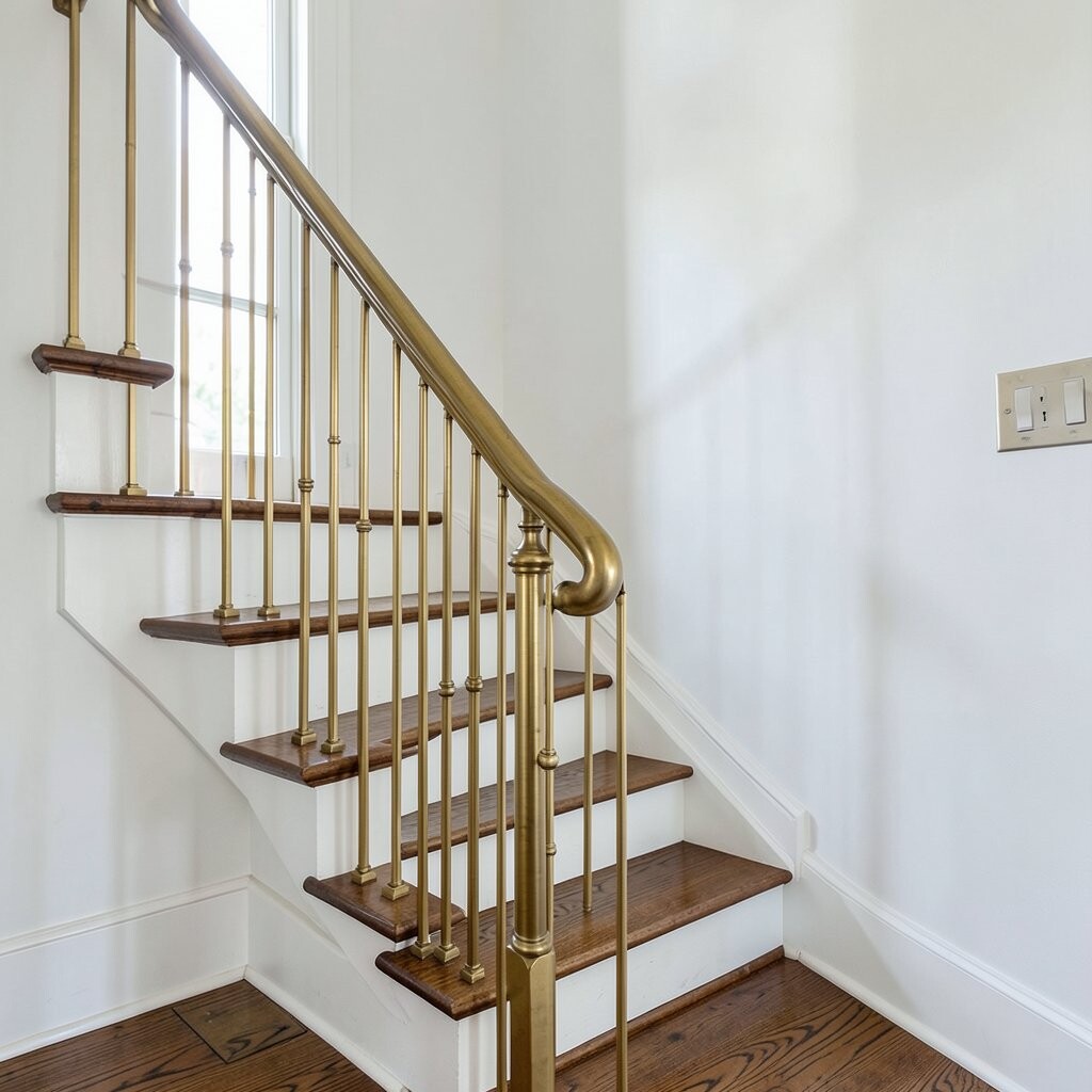 A brass stair railing can add a touch of elegance to your entryway. It’s a functional piece that also serves as a decorative element.