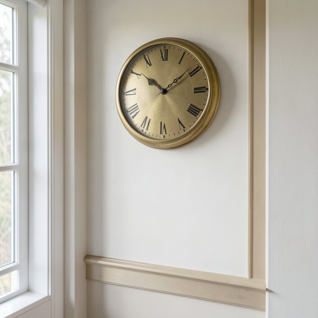 The warm tone of brass pairs well with the clean lines of a clock face. It’s a timeless piece that blends form and function.