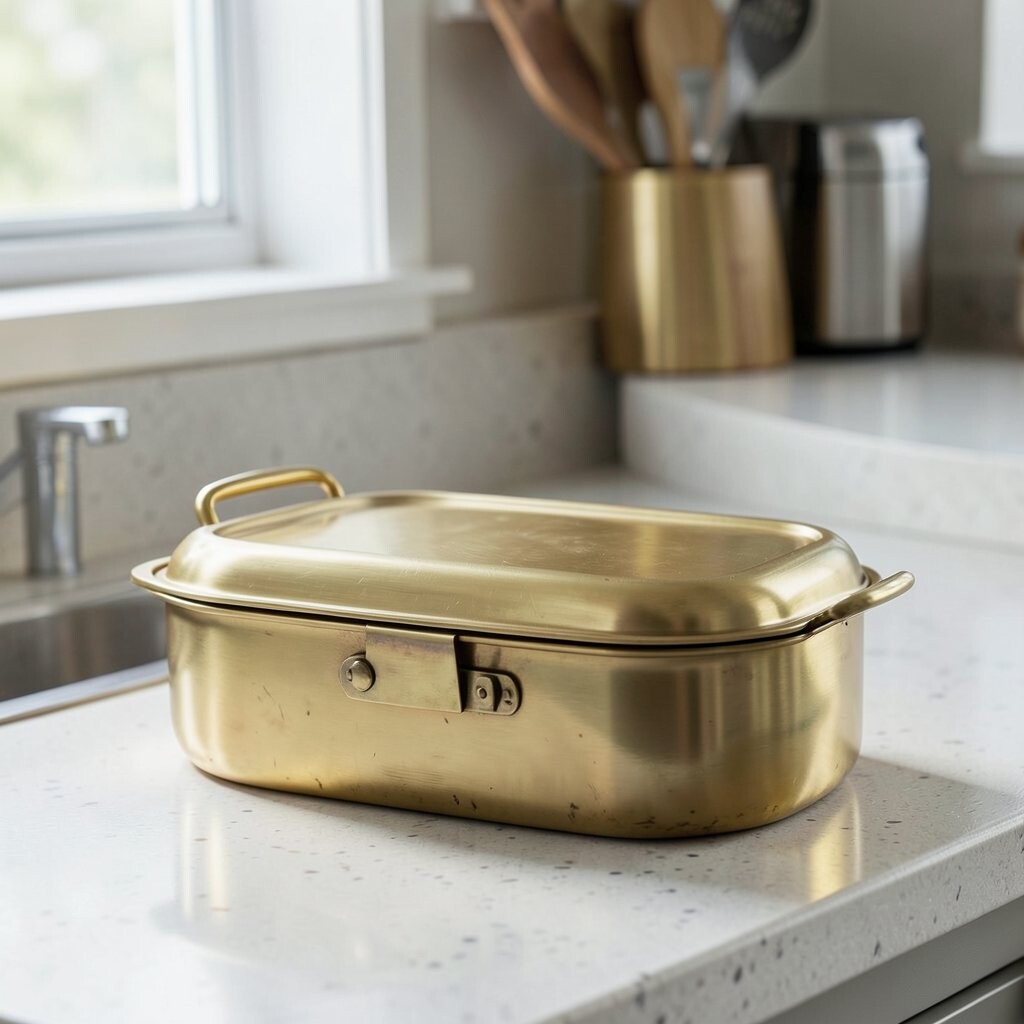 A brass bread box can add a vintage touch to your kitchen. It offers a stylish way to keep your bread fresh and your counter organized.