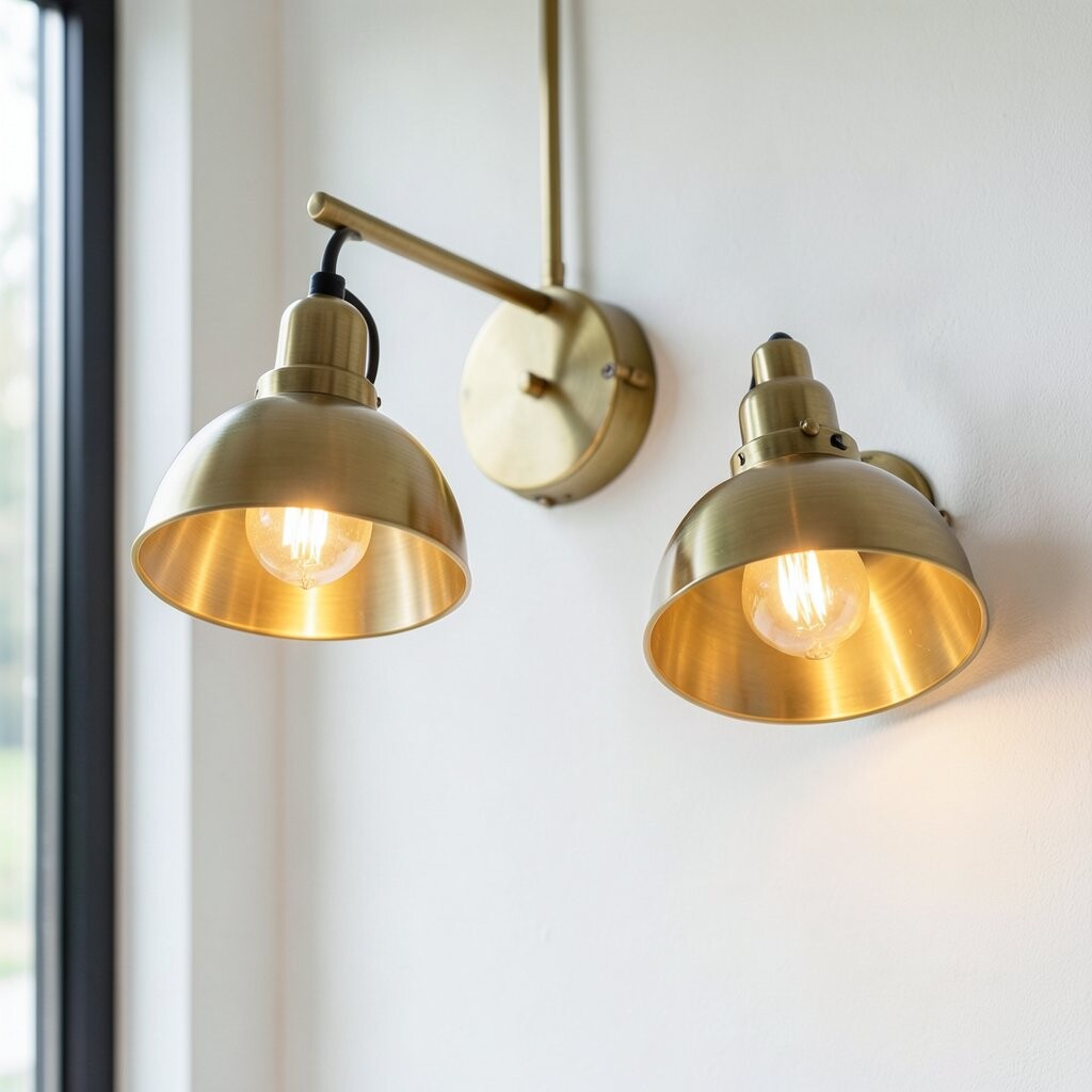 Personalize by choosing lights with different arm lengths or bulb shapes. For a trendy touch, consider mixing brass with other metals like chrome or nickel.