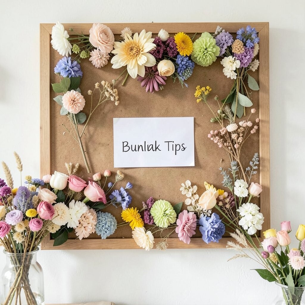 Adding dried flowers to a bulletin board is a creative way to display notes and photos. It turns a functional item into a work of art.