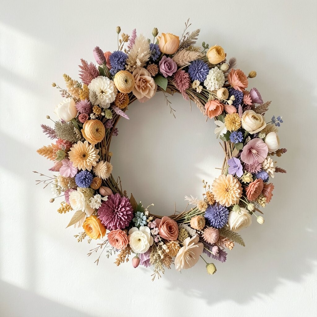 A wreath of dried flowers is a welcoming addition to any home. It brings warmth and charm, especially during the cooler months.