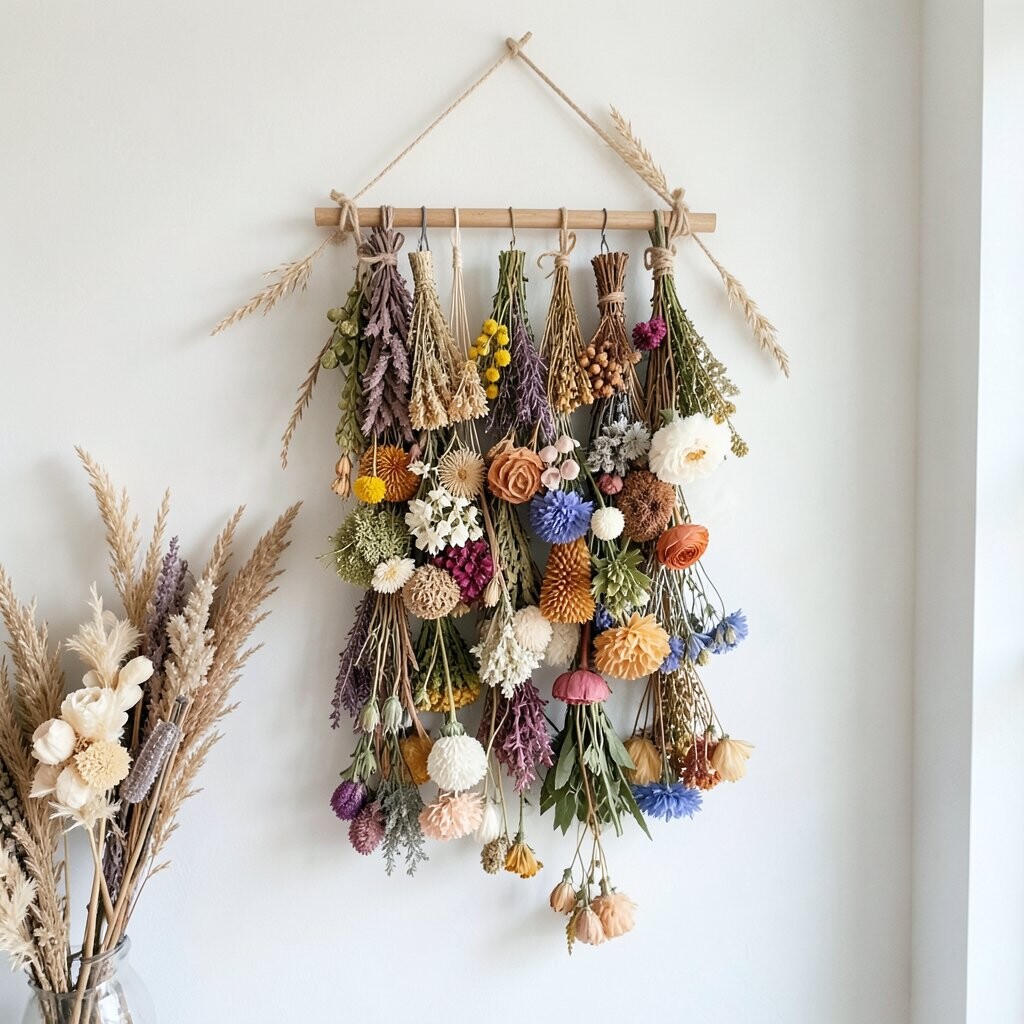 Wall hangings made of dried flowers are trendy and bring a bohemian flair to your space. They’re perfect for adding a bit of color and texture.