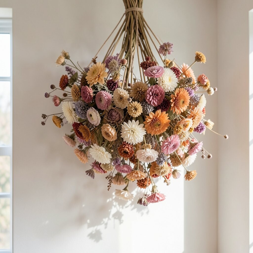 Dried flower mobiles are a playful and enchanting way to decorate. They bring movement and life to any room, creating a whimsical atmosphere.