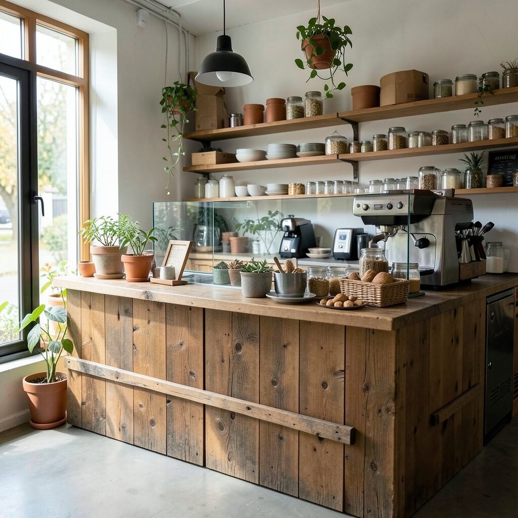 Using reclaimed materials can cut costs while giving your cafe a unique personality. It’s a win-win for both aesthetics and the environment.