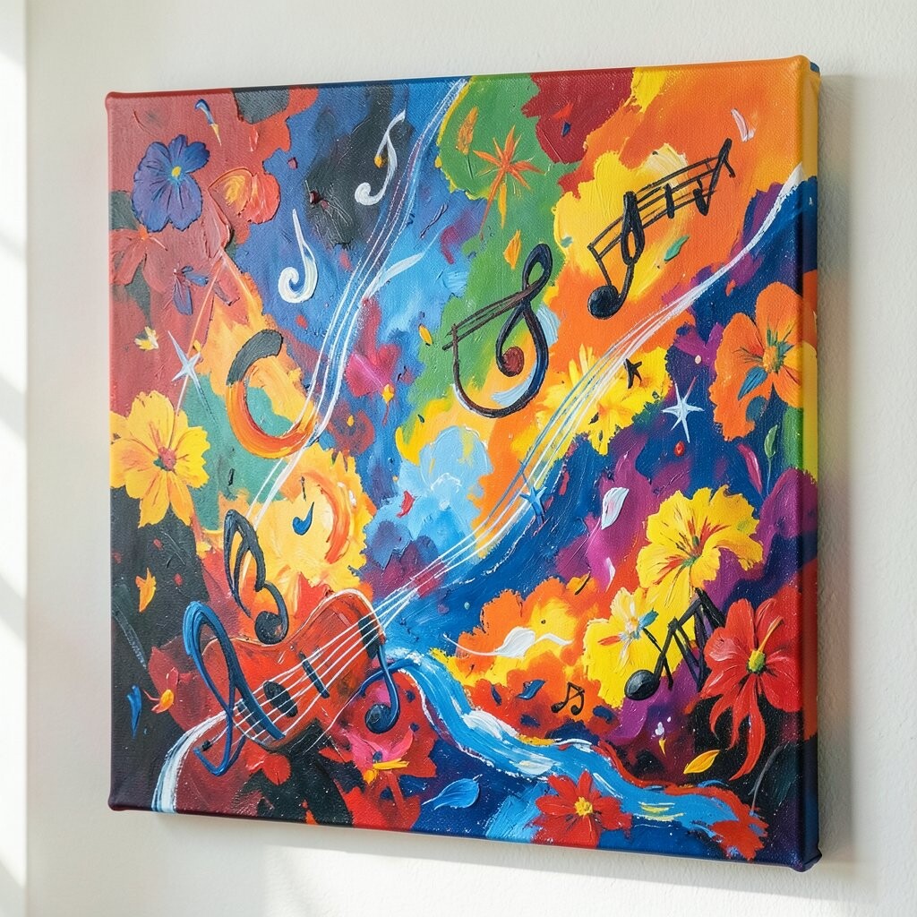 Music-themed art often features instruments and musical notes. They’re great for music lovers.