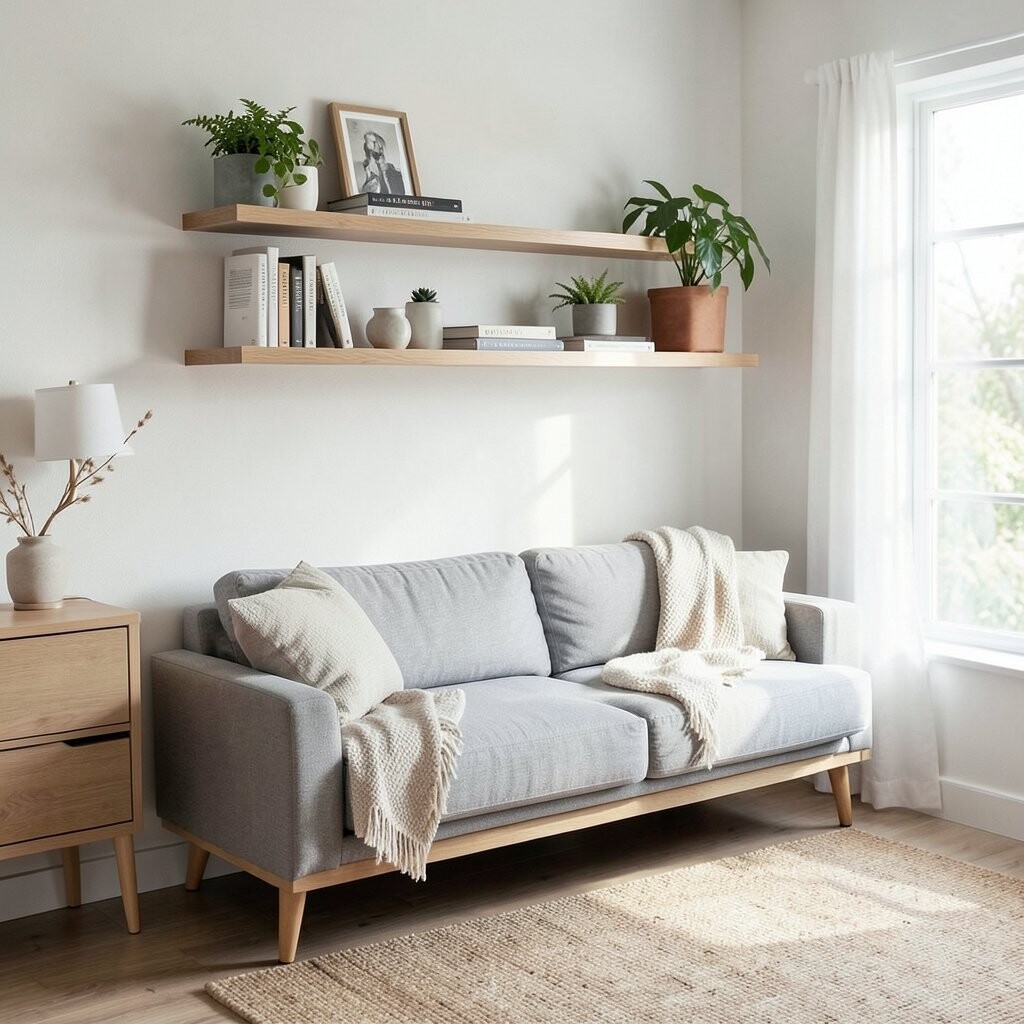 Very budget-friendly, wall shelves are easy to install and find in stores. Look for DIY tutorials to save even more.