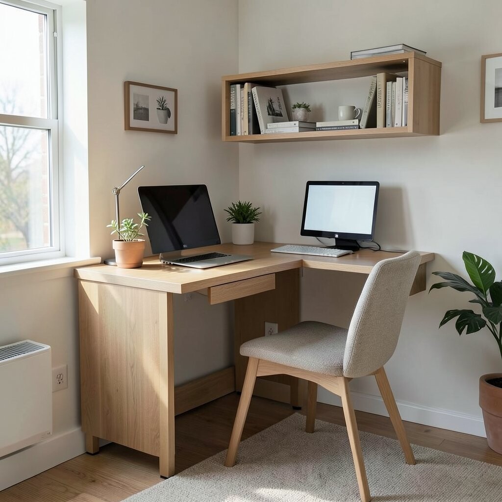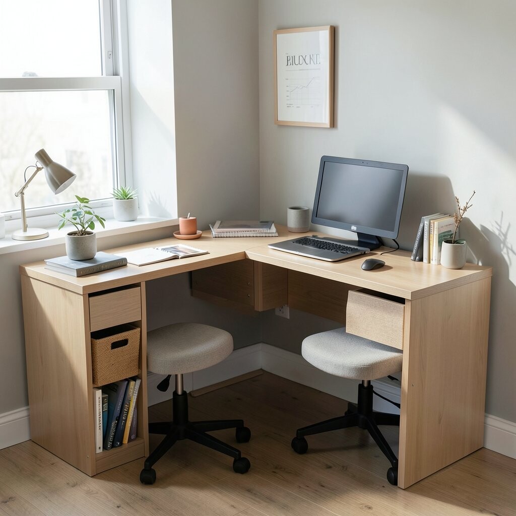 Corner desks fit snugly into any room, making them great for small spaces. They offer a cozy workspace without taking over the room.