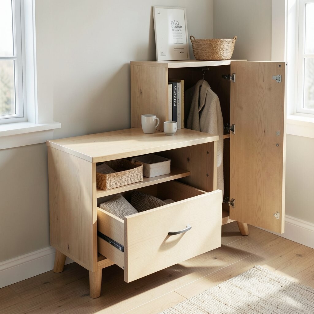 Great for small bedrooms, it keeps your space organized and clutter-free. The storage is hidden but easily accessible.