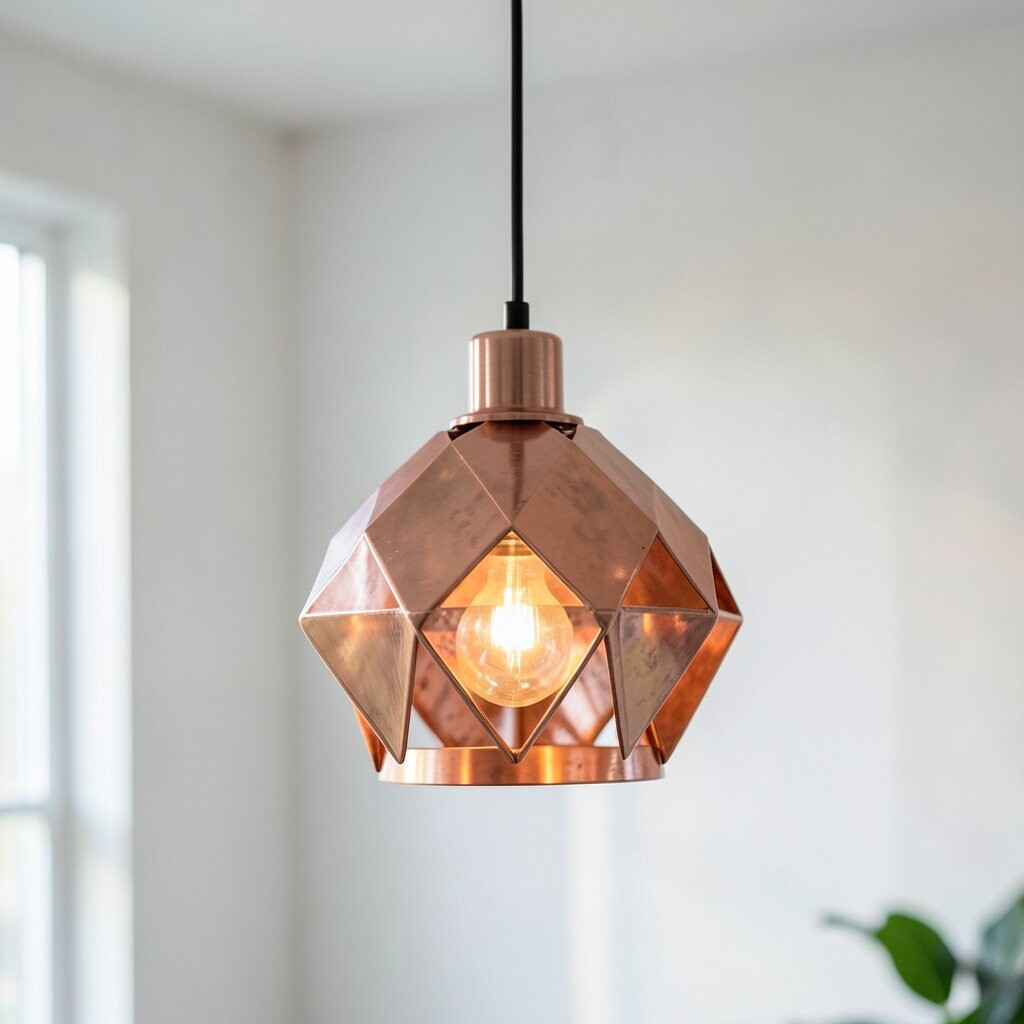 Love shapes and patterns? The Geometric Copper Pendant is your perfect match. With its intricate design, it’s an eye-catching addition to any room. This pendant is all about adding a bit of drama and flair.