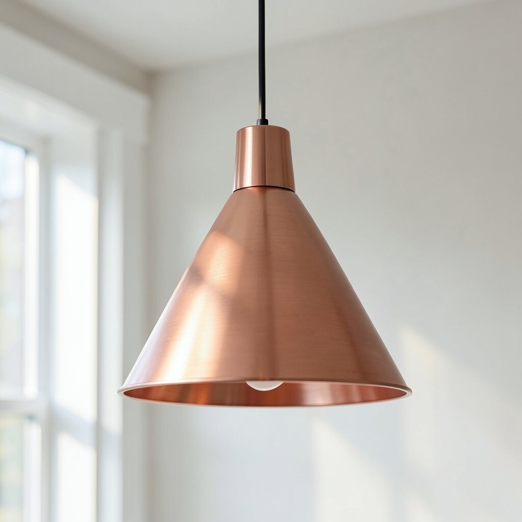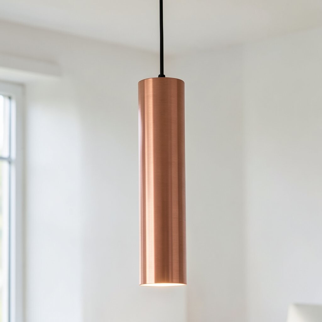 For those who love simplicity, the Sleek Cylindrical Pendant is perfect. With its smooth copper form, it’s a minimalist’s dream. This pendant adds a modern touch to any space.