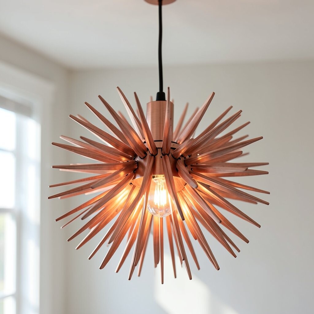 Its sunburst shape is both artistic and eye-catching. Use it in living rooms or dining areas for a statement look. Pair it with modern furniture for a cohesive design. It’s a piece that shines.
