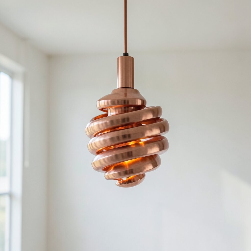 For those who love art, the Sculptural Spiral Pendant is a must-have. With its twisting copper design, it’s a piece of art that lights up your room. This pendant adds drama and flair.