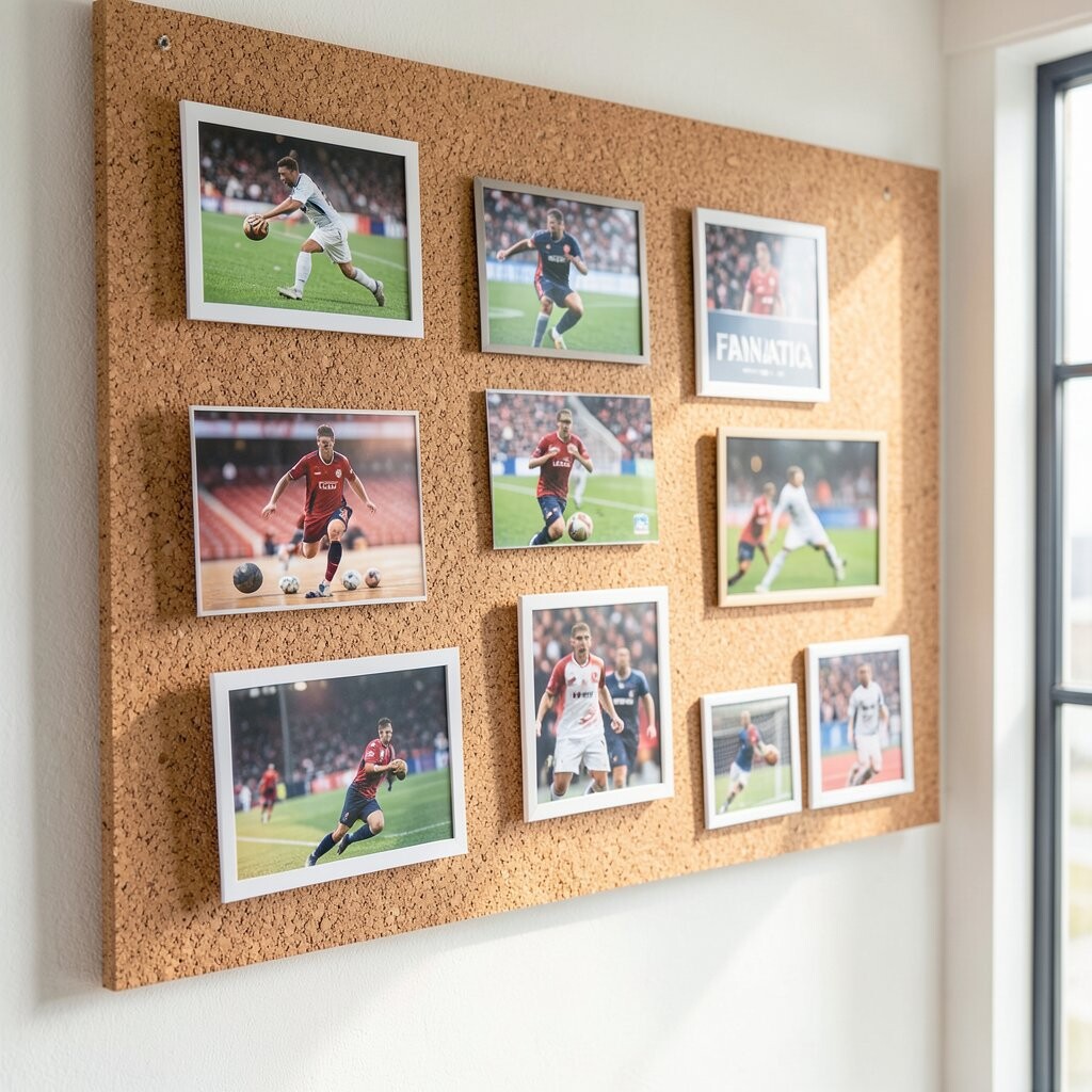 Pin team logos, game tickets, and athlete photos on the board. This setup brings the excitement of the game into your home.