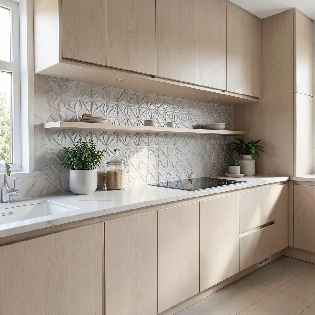 Bring some fun to your kitchen with geometric ledges. They add a playful and artistic touch to your walls.