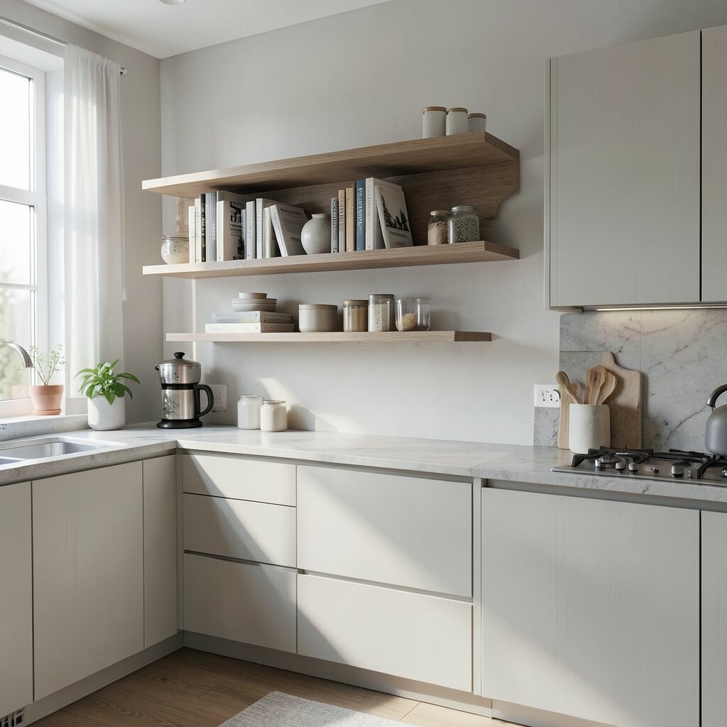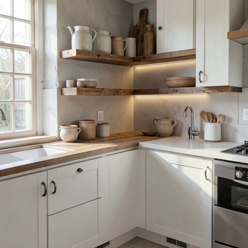 Wooden ledges bring a warm, rustic vibe to your kitchen. They make any space feel cozy and inviting.