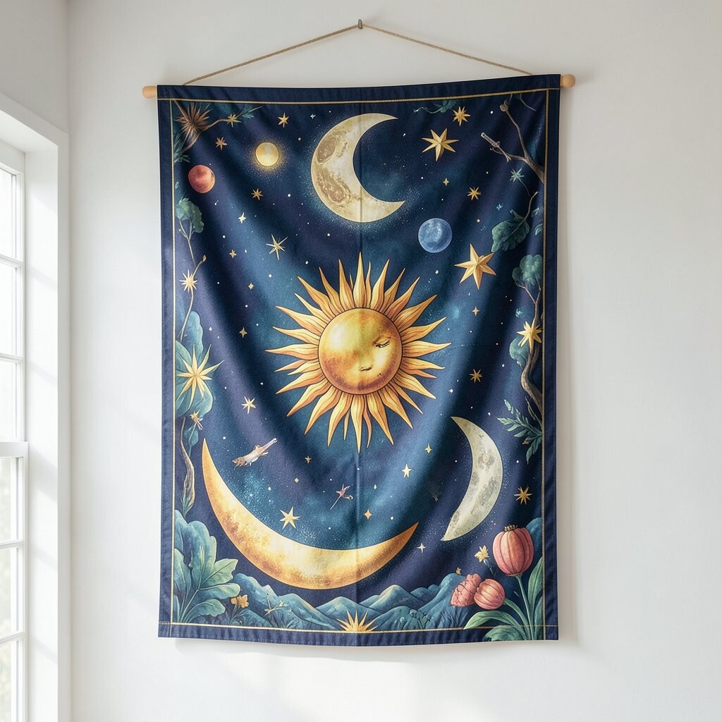 Balance day and night with a sun and moon tapestry. It’s a celestial wonder for your walls.